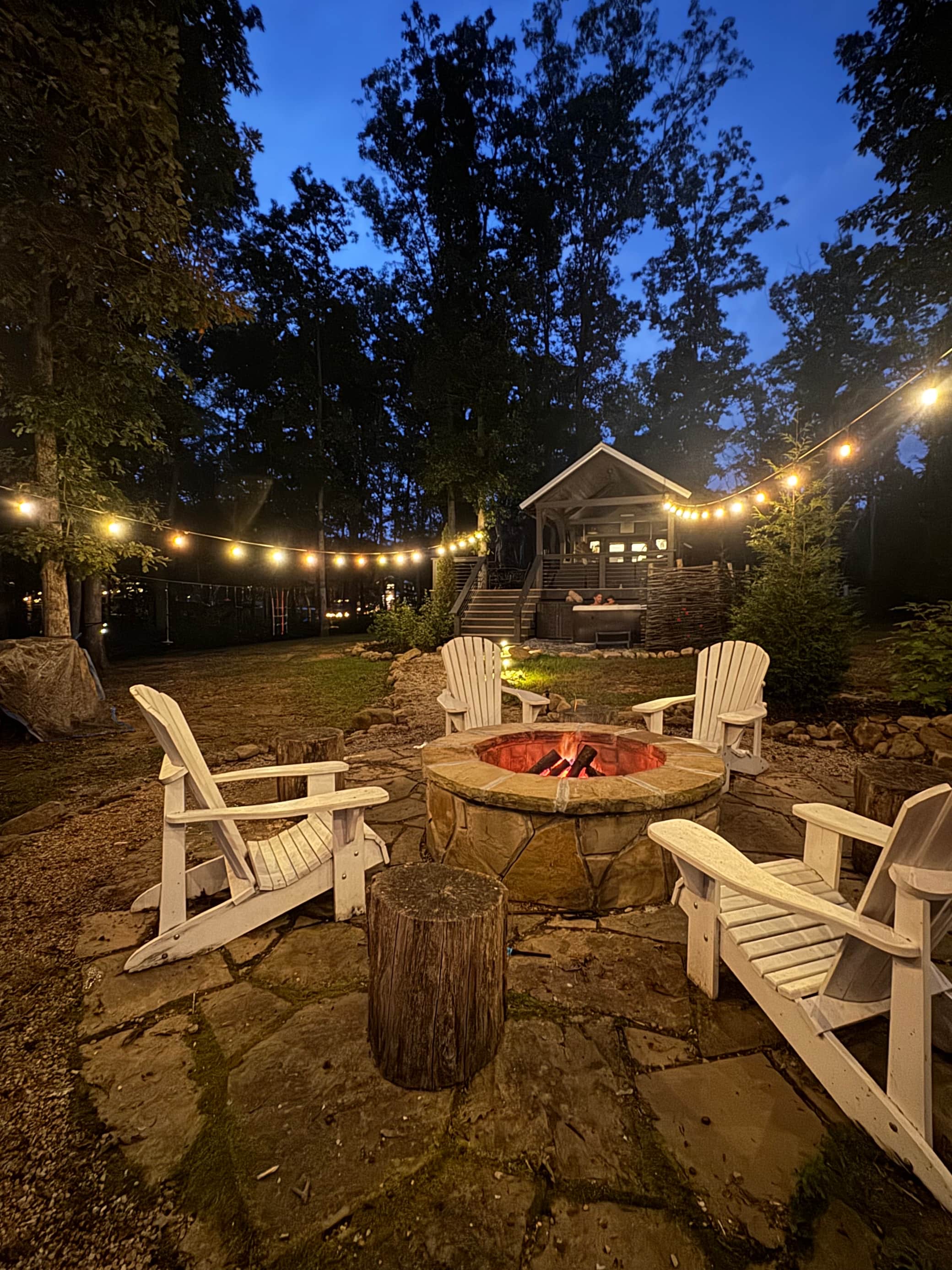 Welcome to Still Waters, a luxury waterfront tiny home created and inspired to bring rest, restoration, and re-connection for your soul. Escape into nature while lounging on one of the spacious decks, sitting around the campfire while admiring the beautiful sunsets or gazing at all the stars, or soaking in the private hot tub. The tiny home sits on 1 acre with large trees encompassing the home with water access to paddle board, kayak, or fish. Guests will have access to enjoy the community amenities that include pavilions, docks, private hiking trails, outdoor games, and playground.Â